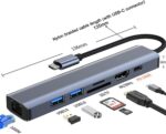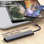 7 in 1 Docking Station, USB C Hub with 3 USB 3.0 Port, 4K HDMI, 1Gbps RJ45 Ethernet, SD/TF Card Reader & 100W PD – Plug and Play, USB Adapter Ethernet for MacBook Pro/Air, Etc