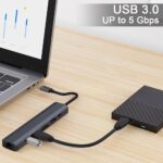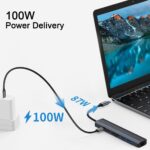 - The fast charging port can quickly power laptops while transferring data using a USB C multi port adapter.
