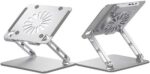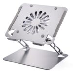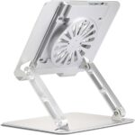 Aluminum Laptop or Tablet Stand with Cooling Fan & 2 USB Ports | Flat Foldable & Portable | Hight Adjustable | Angle Tilt | Silver