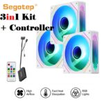SEGOTEP HB12 Combo Kit Gaming PC Cooling (3x Fan + 10port 5v ARGB Controller+ Remote Control ) – 120mm – Infinity Mirror ARGB Design on Sides – PWM – Hydraulic Bearing- THREE Fans – White