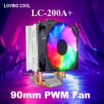 Loving Cool Rainbow CPU Cooler 90mm PWM Fan -Copper Tube Radiator Tower with 2 Direct Contact Heatpipes – Quiet 24 dBA – 100W TDP – 48±10% CFM Air Volume – for ntel LGA1700, 1200, 1150, 1151, 1155, 2011, and AMD AM2, AM3, AM4, AM5, and AM4 sockets | LC-200A+BLACK