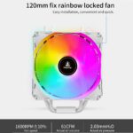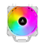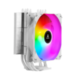 SEGOTEP FROZEN TOWER T4 – WHITE CPU AIR COOLER – 4 Copper Heat pipes (6mm), 154mm height – Hydraulic Mute Bearing – 120mm RGB Fix Rainbow Fan – TDP 165W – Aluminum Heatsink- Asymmetrical Construction Design – WHITE