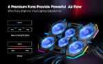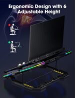 Laptop Cooling Pad, Gaming Laptop Cooling Stand with RGB Light, 6 Quiet Cooling Fans, 6 Height Adjustable and Dual USB Ports for 11 to 15.6 Inch Laptops ,  Extra iPad/Phone Stand