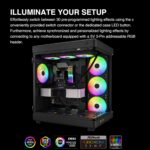 • ILLUMINATE YOUR SETUP : Effortlessly switch between 30 pre-programmed lighting effects using the conveniently provided switch connector or the dedicated case LED button. Furthermore, achieve synchronized and personalized lighting effects by connecting to any motherboard equipped with a 5V 3-Pin addressable RGB header. *Press and hold switch button for 3 seconds to switch between built-in lighting effects and motherboard sync lighting effects.