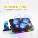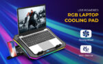 PRO RGB Cooling Pad | 6 Fans Laptop Cooler Stand with Adjustable Speed| 10 RGB mode | TWO 2.0 USB ports | Adjustable Hight | Supports 10″ to 19″ Laptop | Digital LCD Display | BLACK