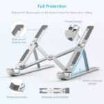 • ?Sturdy & Protective? This laptop stand is made of aluminum alloy that makes it scratch-resistant and sturdy. The slide-proof silicone pads on the stand keep the stand from sliding. The protective hooks ensure your computer does not slide off the stand.