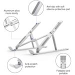 Ultra Compact Laptop Riser Stand | 6 Levels of Height Adjustable Portable Laptop Holder for Desk | Aluminum Foldable Laptop Riser, Compatible with  ALL Laptops up to 17.3 Inch Size | Silver