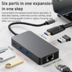 6 in 1 USB Type-C to ( USB3.2 + Gigabit Lan Internet + HDTV/HDMI 4K 60Hz ) HUB Adapter & Charging – BYL-2308 (Dark Gray)
