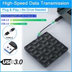 External CD DVD Drive USB 3.0 Type C Portable Ultra Slim CD DVD Rewriter Burner Writer Optical Drive – Standard USB 3.0 Interface with a USB A to USB C adapter OTG – Compatible with Windows Linux Mac OS