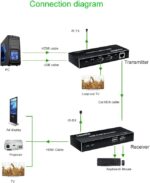 HDMI KVM Extender Kit ” Transmitter TX & Receiver RX ” Supports Audio Output and 2 x USB up to 50 meters Over Patch Cable CAT6E/6 , Compatible with Full HD 4K/1080P/1080i/720P 340MHz , local loop-out