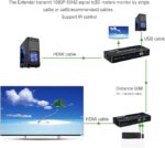 HDMI KVM Extender Kit ” Transmitter TX & Receiver RX ” Supports Audio Output and 2 x USB up to 50 meters Over Patch Cable CAT6E / 6 , Compatible with Full HD 4K / 1080P / 1080i / 720P 340MHz , local loop-out