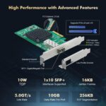 Network Interface Controller Adapter 10G SFP+ PCIe , Intel X520 82599 LAN Controller, 10G/1G/100Mbps SFP+ Slot NIC Card for Windows/Linux/VMware – One Port