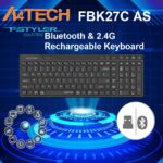 A4tech Bluetooth & 2.4G Rechargeable Keyboard (FBK27C AS) – Dual Connectivity, QuietKey Technology, Multi-Device Pairing, Ultra-Slim Keycaps, for Windows, Mac, iOS, Android