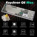Keychron Q6 Max QMK/VIA Wireless Customizable Mechanical RGB Keyboard with Gateron Jupiter Banana Switches 100% Full-size Layout; Full Aluminum Body ; Hot-Swappable Double-shot PBT keycaps ; 256KB Flash Core ; 1000Hz Polling Rate 2.4 GHz wireless, Bluetooth 5.1, and Type-C wired Connectivity ; Double-gasket ; for Mac & Windows | SHELL WHITE Q6M-P4