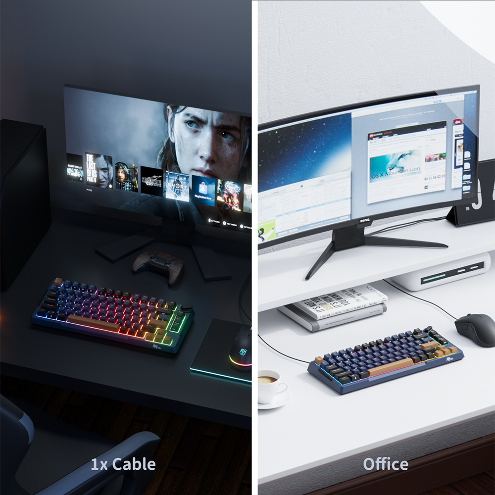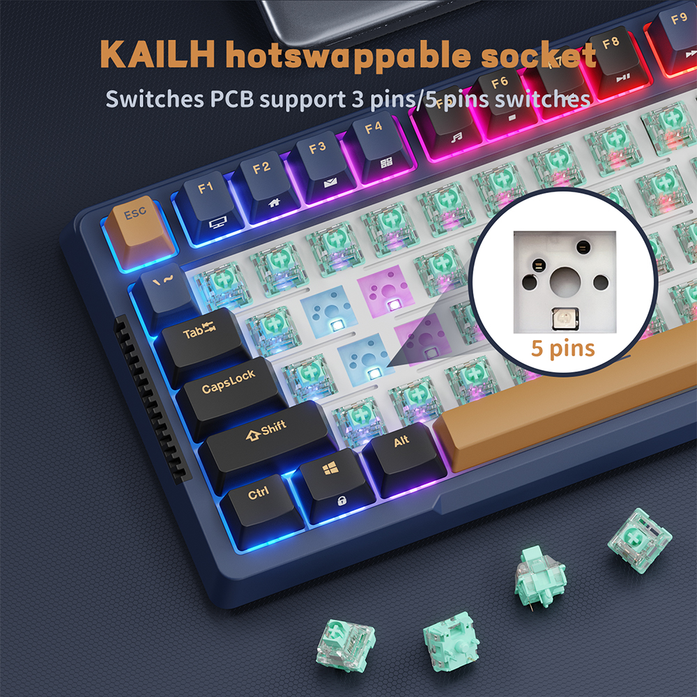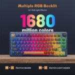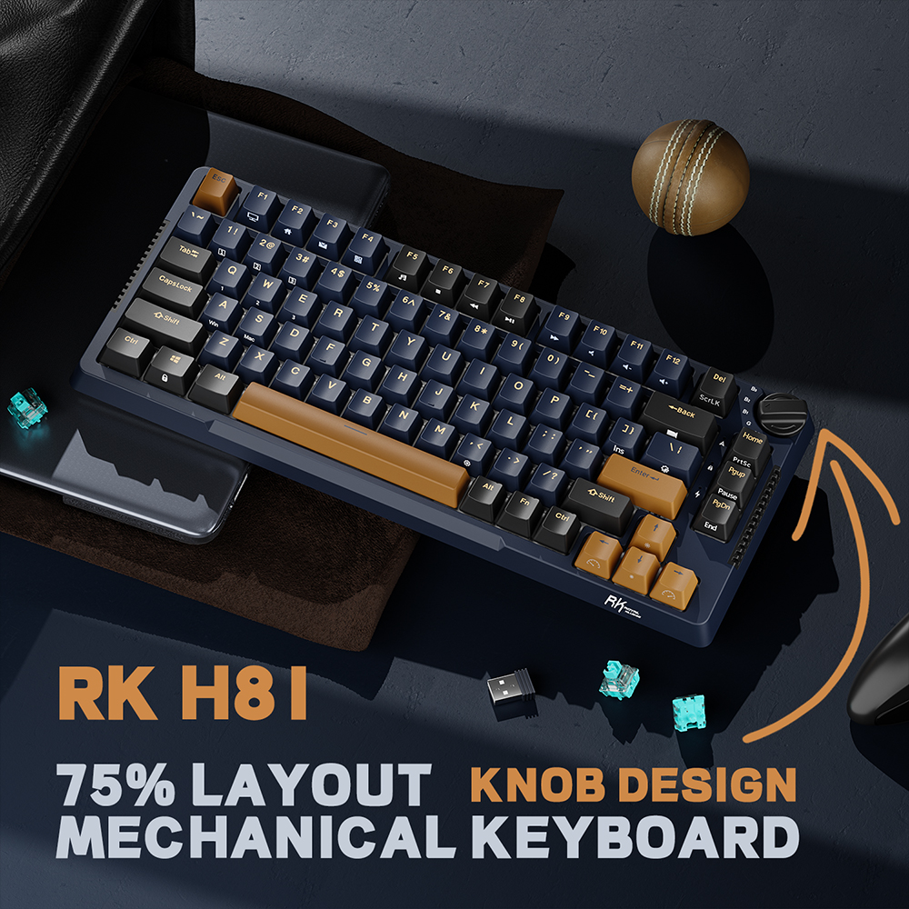 RK ROYAL KLUDGE H81 RGB Wireless Gaming Mechanical Keyboard SKY CYAN Switch, Triple Mode Connectivity 2.4Ghz/BT5.1/USB-C ; Control Knob , Gasket Mounted ; 75% Layout Hot Swappable 81 Keys , ENGLISH/ARABIC – STAR NIGHT