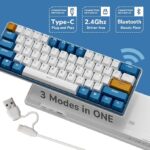 RK ROYAL KLUDGE RK61 Plus Wireless Mechanical Keyboard, Bluetooth/2.4G/Wired RGB Gaming Keyboard, 60% Hot Swappable Computer PC Keyboards with USB Hub, Silence Linear SkyCyan Switches