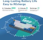 Long Lasting BatteryLong standby with 1850 mAh rechargeable battery support the 60 percent keyboard for hours working. |