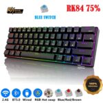 RK ROYAL KLUDGE RK84 RGB 75% Triple Connectivity Mode BT5.0/2.4G/USB-C Hot Swappable Mechanical Keyboard, 84 Keys Wireless Gaming Keyboard – Clicky Blue Switch – English/Arabic
