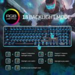 Mechanical Blue Switch: Excellent tactile feedback, every time you press any key, you can clearly get the feedback of the click, and with a clear clicky “kacakaca” sound, perfect for playing games and typing.