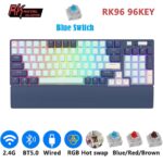 RK ROYAL KLUDGE RK96 Mechanical Keyboard , Programable 96 Keys Hot Swappable Blue Switches – Triple Mode Connectivity BT5.0/2.4G/USB-C , RGB Backlight With Detachable Magnetic Wrist Rest , English/Arabic – Forest Blue