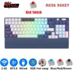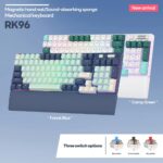 RK ROYAL KLUDGE RK96 Mechanical Keyboard , Programable 96 Keys Hot Swappable Red Switches – Triple Mode Connectivity BT5.0/2.4G/USB-C , RGB Backlight With Detachable Magnetic Wrist Rest , English/Arabic – Forest Blue