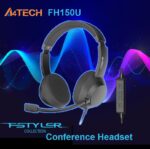 A4TECH FH150U Conference Headset – DSP Stereo Sound – 40mm Speaker Unit – Leather Padded Headband – Flexible Rotating Microphone – In-Line Convenient Controller – Compatible with Windows & Mac OS