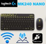Logitech MK240 Nano Wireless USB Keyboard and Mouse Combo , 12 Function Keys 2.4GHz Wireless, 1000DPI, Spill-Resistant Design, Windows® ChromeOS Linux , Black/ English & Arabic