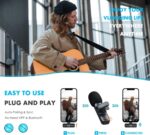 – This wireless lavalier microphone is equipped with advanced 2.4 GHz wireless technology, without any delay in transmission and it’s as simple as plug and play. No setup is needed, just plug in the receiver, power on the mic transmitter, and voila! Instant auto connection, no need for apps, Bluetooth, or network connections. Embark on your creative journey now and experience the freedom of wireless audio with this tiny wireless microphone!