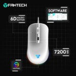 Fantech VX9S Kanata Wired Gaming Mouse, RGB Lighting, 60 IPS Speed, 20G Acceleration, A725F Chipset, Adjustable 400-7200 DPI, Huano 10 Million Switch, White | VX9S-White
