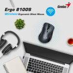 Genius ERGO 8100S Wireless Silent Mouse 2.4GHz – Ergonomic Right Handed – Silent Switch – 6 Buttons – Adjustable DPI 1600 – Compatible with Windows, Mac OS, and Linux OS | Titanium Champagne