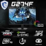 MSI G274F Gaming Monitor: 27″ FHD IPS, 180Hz Refresh Rate, 1ms Response Time, Adaptive Sync, HDR Ready, Less Blue Light, Anti-Flicker, Frameless Design, Tilt Adjustment , PC, Mac, Console & Laptop Interface Options Include DisplayPort 1.2a or 2 x HDMI™ 2.0