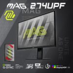 MSI MAG 274UPF 27 inch Gaming Monitor Rapid IPS Panel 144Hz 4K UHD 1ms GtG ; AMD Free-Sync ; VESA DisplayHDR 400 ; Night Vision ; Adjustable Stand Tilt Swivel Pivot & Height: 0 ~ 130mm