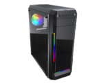 COUGAR MX331-T GAMING MID TOWER ARGB CASE TEMPERED GLASS SIDE PANEL – 3 Built in ARGB strips – Adjustable Fan Speed Controller – 4 USB Ports – , Supports 350mm Graphic Card, 1x 5.25” Drive Bays, 2x 2.5” SSDs, 2x 3.5” HDDs – 240mm water cooling radiator – supports 5 x120mm fans – ARGB fan x 1 Pre-installed- BLACK