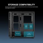 The case supports up to ATX motherboards, air coolers with 180mm RAM clearance, and VGA cards with lengths up to 417mm. In terms of the storage compatibility, the ARGUS M4 supports installation of up to 3x 2.5″ or 2x 2.5″+1x 3.5″ and can accommodate PSU with lengths up to 200mm.