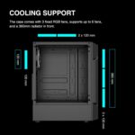 GAMDIAS ATX AURA GC7 ARGB COMPACT MESH MID-TOWER CASE – w/Tempered Glass, 3 Built-in 120mm Fixed Gaming RGB Fans, Support Up to 6X 120mm Fans, 120mm AIO/Radiator, 300mm GPU/VGA, 160mm CPU Cooler | BLACK AURA-GC7-B