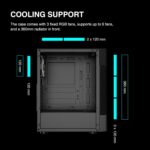 • Advanced Cooling System: Designed with gamers in mind, it features ample space for adding multiple cooling fans and radiators, ensuring your system stays cool under heavy load.