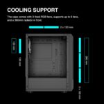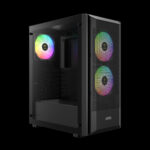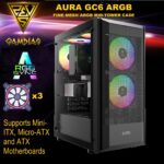 GAMDIAS AURA GC6 ARGB FINE MESH ARGB MID-TOWER CASE – Gaming Computer PC Case w/Tempered Glass, 3 Built-in 120mm Fixed RGB Fans, Support Up to 6X 120mm Fans, 360mm AIO/Radiator, 300mm GPU/VGA, 150mm CPU Cooler | BLACK AURA-GC6-B