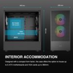 • Interior Accommodation: Designed with a compact form factor, the case offers the option to house up to E-ATX motherboards and VGA cards up to 390mm.