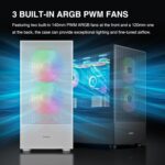 • 3 Built-in ARGB PWM Fans: Featuring two built-in 140mm PWM ARGB fans at the front and a 120mm one at the back, the case can provide exceptional lighting and fine-tuned airflow.