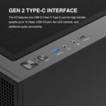 • Gen 2 Type-C Interface: The I/O features one USB 3.2 Gen 2 Type-C port for high transfer speeds up to 10 Gbps, USB 3.0 port, fan LED controls, and additional audio connectivity.