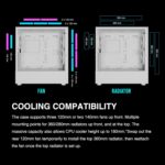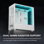 The case supports three 120mm or two 140mm fans up front. Multiple mounting points for 360/280mm radiators up front, and at the top. The massive capacity also allows CPU cooler height up to 180mm.