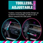 • Toolless, Instantly Adjustable Design: Toollessly adjustable up to 65mm horizontally, as well as up to 30mm towards the side panel.