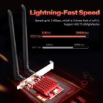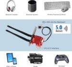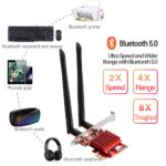 • Dual-Band PCI-E Card with Bluetooth 5.0 Adapter : The range of Bluetooth 5.0 is 4 times that of Bluetooth 4.2, the transmission speed is doubled, and the transmission speed is changed, thereby reducing the total throughput. This WiFi 6 for PC and desktop computers provides more convenience and requirements for Bluetooth headsets, keyboards, mice, etc. (Note: You must plug the power cord into the 9-pin usb2.0/3.0 interface of the motherboard to achieve Bluetooth Features).