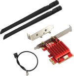 • High-efficiency heat sink/gold-plated antenna connection: Add heat sink to make the network card run continuously and stably without stopping the machine, helping the network card to release maximum performance. The gold-plated antenna interface makes it possible to receive and transmit transmission, gold-plated gold fingers, good electrical conductivity, better contact, and more stable transmission.
