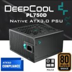 DeepCool PL750D ATX3.0 750W PSU 80 PLUS BRONZE ; ATX12V V3.0 with Native PCIe 5.0 Power Connector rated for 450W; Hydro Bearing 120mm Fan ; Full Protection OPP, OVP, SCP, OTP …etc ; Non-Modular | BLACK