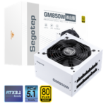 Segotep GM8500W White 850W PCIe 5.0 Full Modular 80 Plus Gold PSU ATX 3.1 Gaming Power Supply, 12VHPWR Cable, 12+4PIN port and Dual 6+2Pin ports for Different Graphics Cards, Silent Fan mode | WHITE