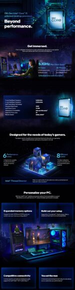 • Turbo Boost Max Technology 3.0, and PCIe 5.0 & 4.0 support. Intel Optane Memory support. No thermal solution included. Discrete graphics required