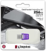 Kingston DataTraveler microDuo 3C 256GB USB-C & USB-A Flash Drive | Speeds up to 200 MB/s | USB 3.2 Gen 1 | Duo Connector | DTDUO3CG3/256GB