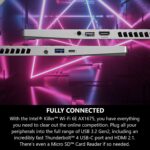 • FULLY CONNECTED – With the Intel Killer Wi-Fi 6E AX1675, you have everything you need to clear out the online competition. Plug all your peripherals into the full range of USB 3.2 Gen2, including an incredibly fast Thunderbolt 4 USB-C port and HDMI 2.1. There’s even a Micro SD Card Reader if needed.