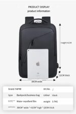 Business Slim Casual Laptop Backpack For Up To 15.6 Inch – Durable Oxford Textile – USB Charging Port – Organized Compartments – Waterproof – Travel Friendly – Electronics Impact Protection – 41 x 12 x 30 cm – BLACK